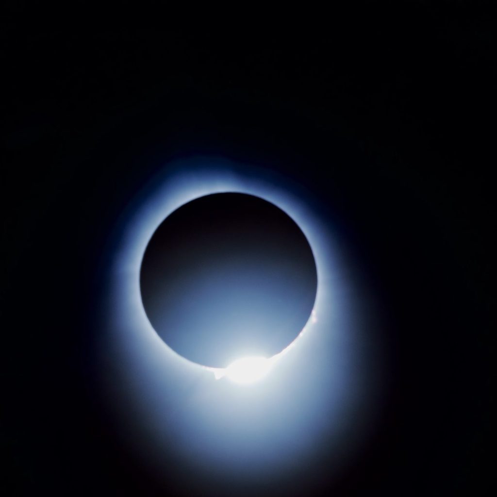 Moments before I had taken off the solar filter and let the camera adjust automatically. It was my first eclipse and no one wants to be messing about with balancing exposure in a rapidly dimming environment manually. The diamond ring first, then totality was upon us. Blackness, quiet. The wind died down. The whooping and clapping stopped and people spoke in whispers. I got a few shots off, but mostly I wanted to just be present.