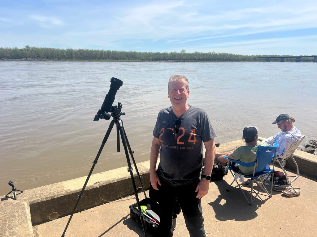 I didn’t sleep much that night, waking up to the latest forecast – and they were good! Later that day would be best around Cape Girardeau on the Mississippi, a two and a half hour’s drive north. The drive was through fog later that morning, but with around 50 miles to go, it cleared up beautifully and but for a few high cirrus clouds, the sky was bright blue and warm.