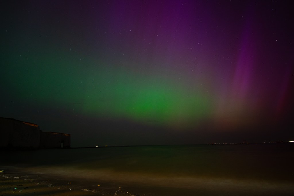 We don’t get much in the way of Northern Lights here on the south coast of England, but as the Sun is coming into it’s solar maximum later this year, we had a very large CME heading towards Earth and it hit Europe just right for Kent to be lit beautifully beneath clear skies. For once the borealis gods smiled down upon us.